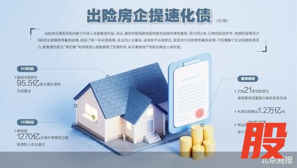 出险房企债务风险化解工作进入全面推进阶段。继11月5日融创中国宣布95.5亿美元境外债务正式完成重组后,仅隔一天,碧桂园1270亿元境外债重组方案也获债权人会议通过。北京商报记者梳理发现,10月以来,已有包括花样年、旭辉控股等至少8家房企披露债务重组进展,掀起了新一轮化债高潮。