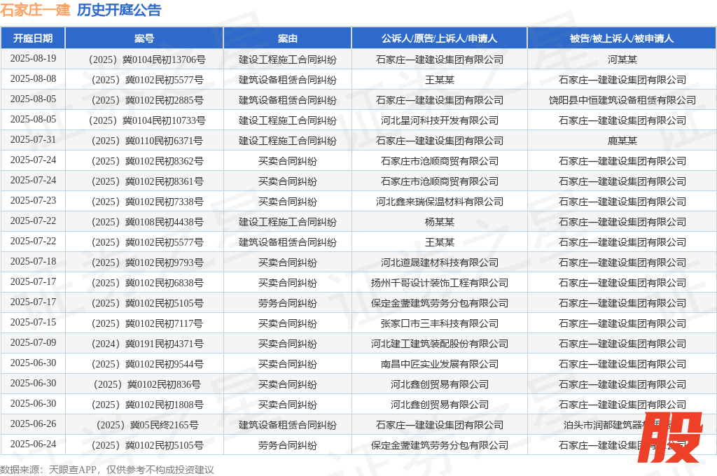 本站消息,根据天眼查APP显示诚信双盈配资,近日公布了一则石家庄一建建设集团有限公司作为被告/被上诉人的开庭公告,详细内容如下: